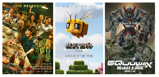 同样在4月4日,肖央主演的剧情片《阳光照耀青春里》和美国奇幻动作片《我的世界大电影》,还有日本动画改编的剧场版《机动战士高达:跨时之战》也将一同登陆院线,让大家在欣赏剧情的同时,也能对青春平添一丝回味和感慨。