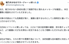 桃乃木かな(桃乃木香奈)收到死亡威胁!